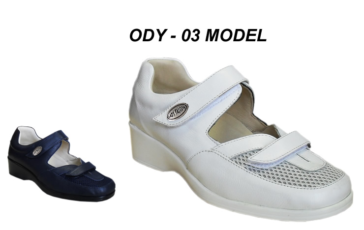 Hemşire ayakkabısı modeli ODY-03 %100 hakiki yumuşak deri ile üretilmiş konforlu, rahat ve ortopedik özellikleri ile ayağınızın aradığı rahatlıkta ürünlerdir. Sağlık, medikal, hemşire veya hastane ayakkabısı olarak adlandırılan beyaz ve lacivert renkli ayakkabılar farklı sektörlerde kullanılan ve tercih edilen ayakkabı modelleridir.
