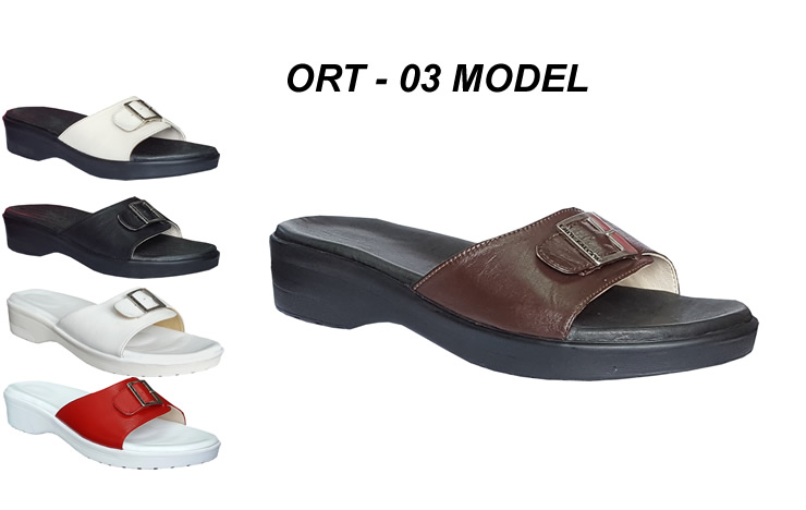 Bayan ev terlik modeli ORT-03 %100 hakiki deri kaliteli yumuşak malzemeden üretilmiş ve uzun süre yürüyüşlerde dahi ayağı yormayan ve terletmeyen özelliklere sahiptir. Şiş ve ödemli ayakların kolayca kullanabileceği ortopedik bayan terlik modeli.