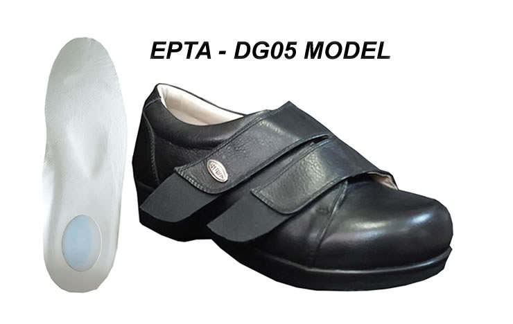 Şiş ve ödemli ayaklar için ayakkabı modeli EPTA-DG05 ürünü ayarlanabilir çift atkısı sayesinde kolayca ayağınıza uygun hale getirilir. Siyah renk ile üretim yapılmakta olup cırtlı ve bağcıklı 2 farklı model mevcuttur.