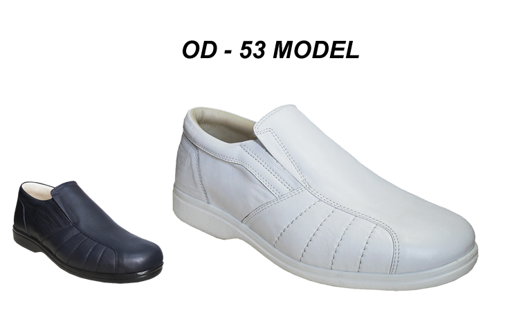 Hastane ayakkabısı OD-53 model ürün gerçek yumuşak deri ile üretilmiş konforlu, rahat ve uzun süre yürüme olanağı tanıyan ayakları yormayan özellikleri ile doktor, 112 personeli ve erkek hasta bakıcıları tarafından tercih edilen modeldir.