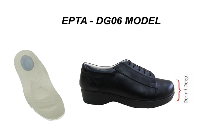 Şiş ve ödemli ayaklar için ayakkabı modeli EPTA-DG06 ürünü ayarlanabilir bağcığı sayesinde kolayca ayağınıza uygun hale getirilir. Siyah renk ile üretim yapılmakta olup cırtlı ve bağcıklı 2 farklı model mevcuttur.