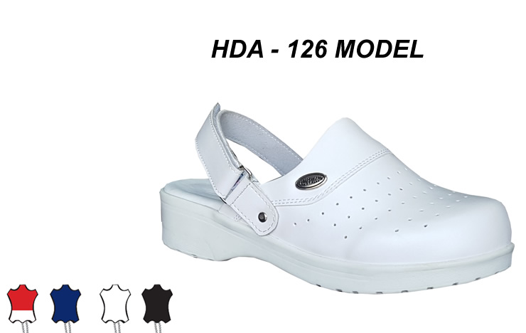 Bayan atkılı sabo terlik HDA-126 modeli uzun süre ayakta yoğun iş temposunda çalışmak zorunda olan hemşire, aşçı, temizlik ve sağlık personellerine özel üretilmiş kaliteli, uzun süre kullanıma uygun ve ayağı yormayan terlik modelidir. Üst kısmında kısmi hava delikleri sayesinde hava akışı sağlanır.