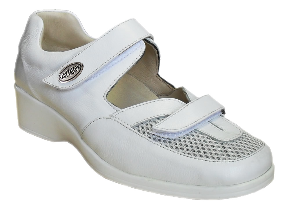 Deri hamşire ayakkabısı modeli, bayan sağlık çalışanları için üretilmiş beyaz ve lacivert renkli ortopedik ayakkabılardır. Uzun süre ayakta çalışmak zorunda kalan ve yoğun tempolu çalışan sağlık personellerinin ayak yorulmalarına kesin çözümdür. Hızlı hareket etmenize olanak sağlar özellikte olup taraklı ve tarsal kısmı geniş olan bayanlar için kullanışlı bir modeldir.