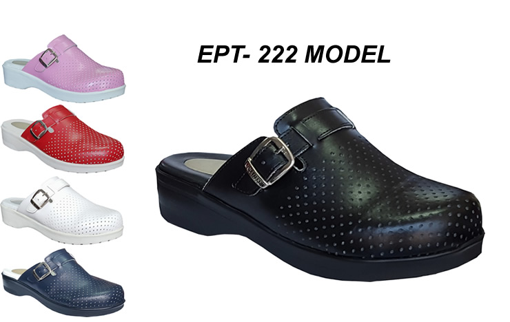 Ortopedik özelliklere sahip sabo terlik modeli olan EPT-222 serisi topuk dikeni diğer adı ile plantar fasciitis hastalarının topuk bölgesinde hissettikleri şiddetli ağrıları azaltmayı amaçlayan bir ürün olup genel itibarı ile önü kapalı olduğu için hastane, restoran ve otel çalışanları tarafından talep edilmektedir. Aynı zamanda ev hanımları tarafından ev ve dışarı kullanımda tercih edilmektedir. Topuk dikeni teşhisi doktor tarafından konduysa ve sizde günlük işlerinizde yürümekte zorlanıyorsanız mutlaka terlik ürünlerimizi deneyiniz. Diğer topuk dikeni ayakkabı ve terlik modelleri için ilgili sayfamızı ziyaret etmenizi tavsiye ederiz.