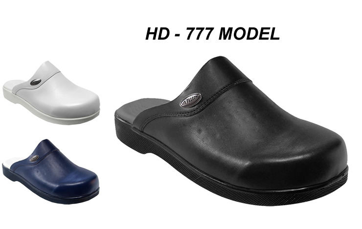 Erkek aşçı terliği modeli HD-777  uzun süre ayakta yoğun iş temposunda çalışmak zorunda olan doktor, aşçı, temizlik ve sağlık personellerine özel üretilmiş kaliteli, uzun süre kullanıma uygun ve ayağı yormayan terlik modelidir. Üst kısmı düz deliksiz model olup hava akışının sağlanması açısından ayak iç kısımlarında kısmi delikler bırakılmıştır.